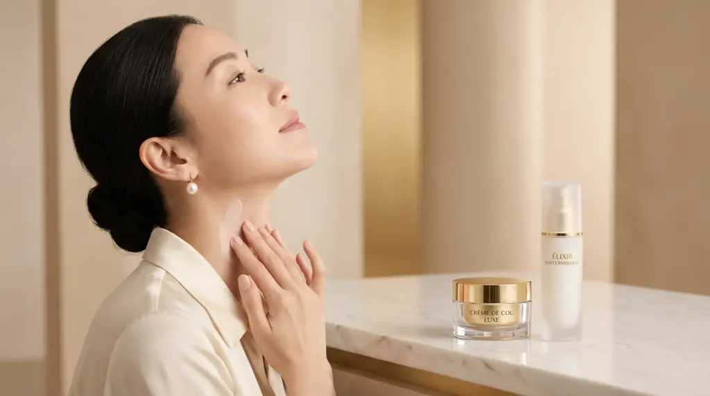 搽頸霜時配合簡單嘅按摩,可以促進血液循環,幫助產品吸收,同時放鬆繃緊嘅肌肉。